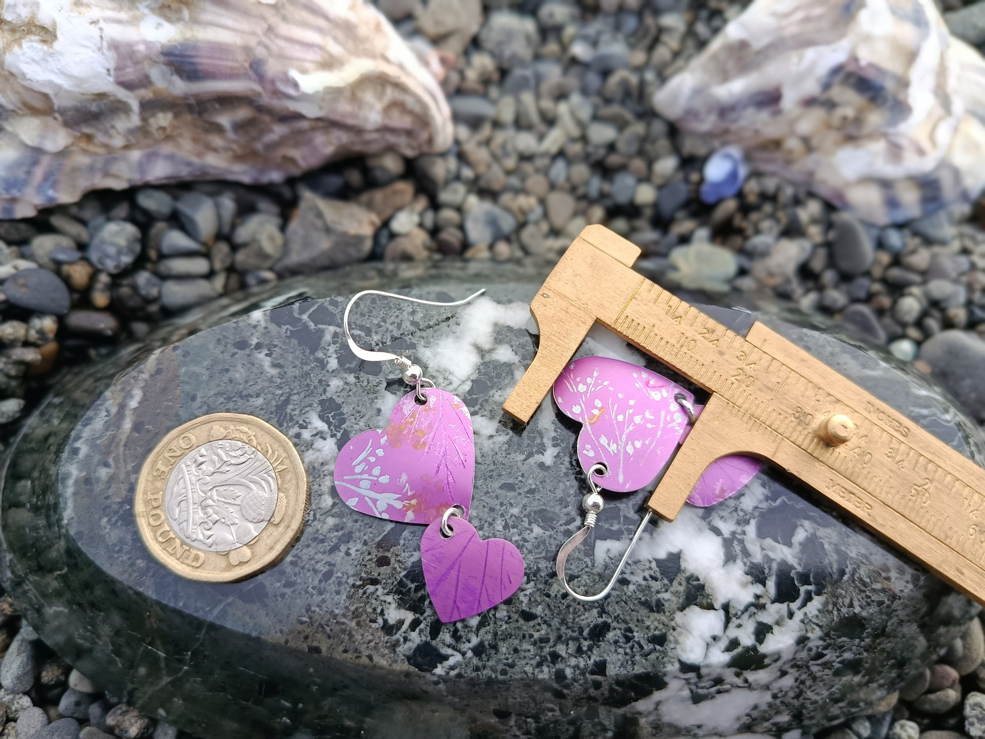 These earrings were hand dyed and imprinted with local wildflowers in Glenbrittle at the foot of the Cuillin Mountains. The loops are sterling silver. As each wildflower is unique, the earrings are similar to each other but not exactly the same. These earrings feature Meadowsweet leaf and buds.